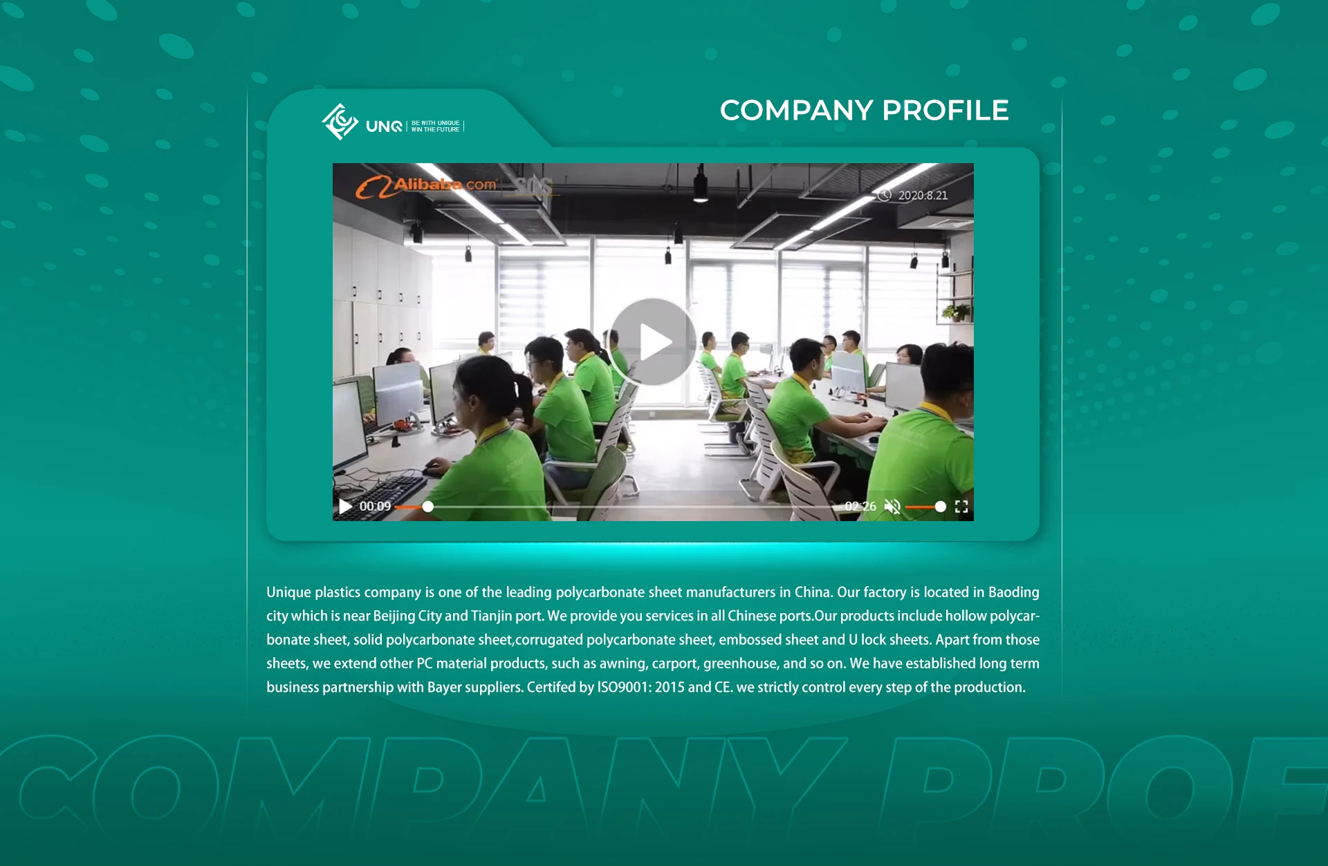 주요 제품:폴리 카보네이트 솔리드 시트, 폴리 카보네이트 중공 시트, 폴리 카보네이트 골판지 시트, 카포트, 폴리 카보네이트 차양, 플라스틱 시트, 아크릴 시트
